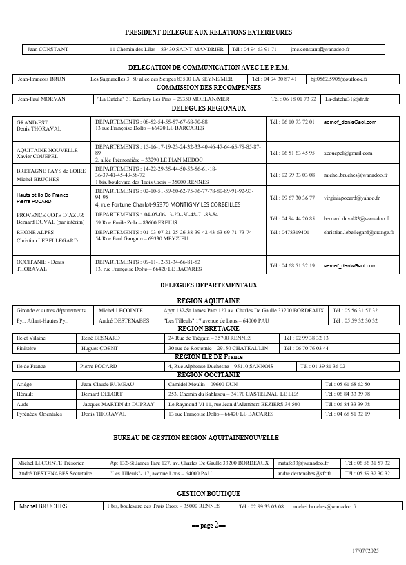 Délégués régionaux, départementaux